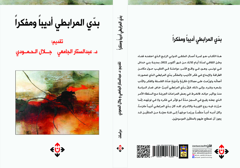 ذا الكتاب هو ثمرة أعمال الملتقى الدولي الرابع الذي احتضنه فضاء وطن الثقافي لمدّة أيام ثلاثة، من شهر أكتوبر 2022، بمدينة بني خداش في تونس. وهو، في واقع الأمر، مواصلة في التنقيب حول مكامن الطرافة والإبداع في فكر الأديب والمفكّر بدّي المرابطي الذي تمحورت أعمالُه وتوزّعت على مجالاتٍ فكريّةٍ وأدبيّةٍ عدّة: الفلسفة والفكر والأدب بشعره ونثره. وإلى ذلك، فإنّ بدّي المرابطي أديبٌ خاض غمار السياسة منذ بواكير حياته. فانخرط في بعض الصراعات الجريئة مع السلطة؛ الأمر الذي جعله يقبع في السجن مدّةً لم تؤثّر في فكره ولا في توجّهه، إنّما عزّزت فيه روح الثورية والالتزام. لقد كان بدّي المرابطي أديباً ملتزماً، وكان أدبه أدباً منظّماً، وربّما موجّهاً إلى فئة معيّنة من المتلقّين قد يجوز أن نصطلح عليهم بالمتلقّين الموسوعيّين